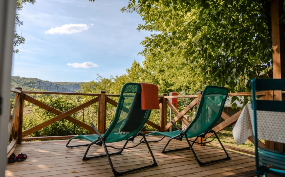 Een volledige luifel boven het terras van de mobile home zou het verblijf nog comfortabeler maken.